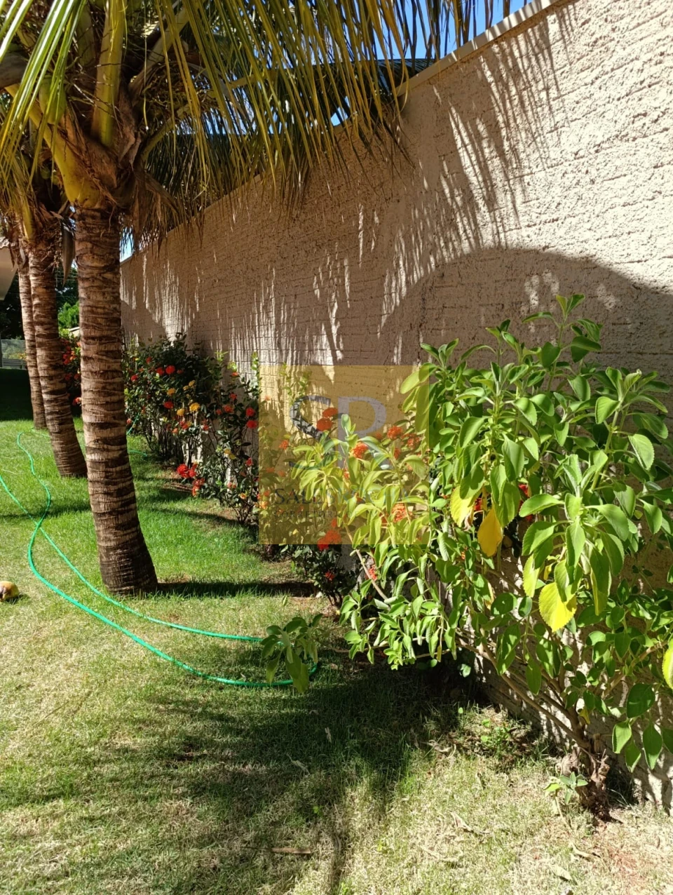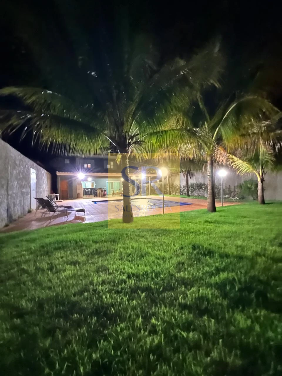 Terreno gramado, com amplo espaço na frente e nos fundos